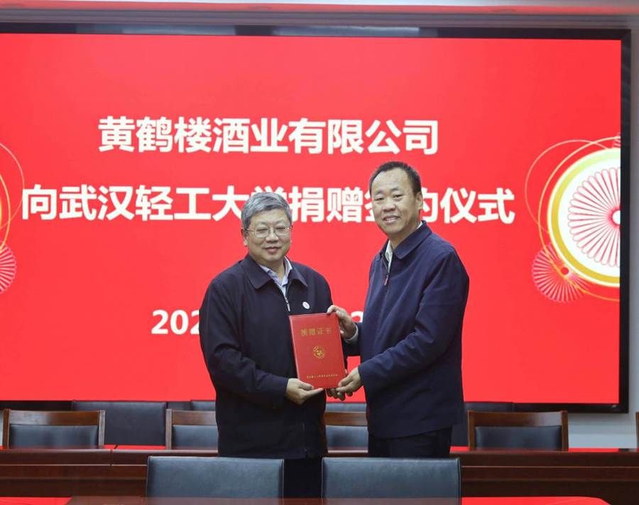 捐赠仪式上,王立兵向许鹏颁发捐赠证书,黄鹤楼酒业有限公司代表与学校代表签署捐赠协议。